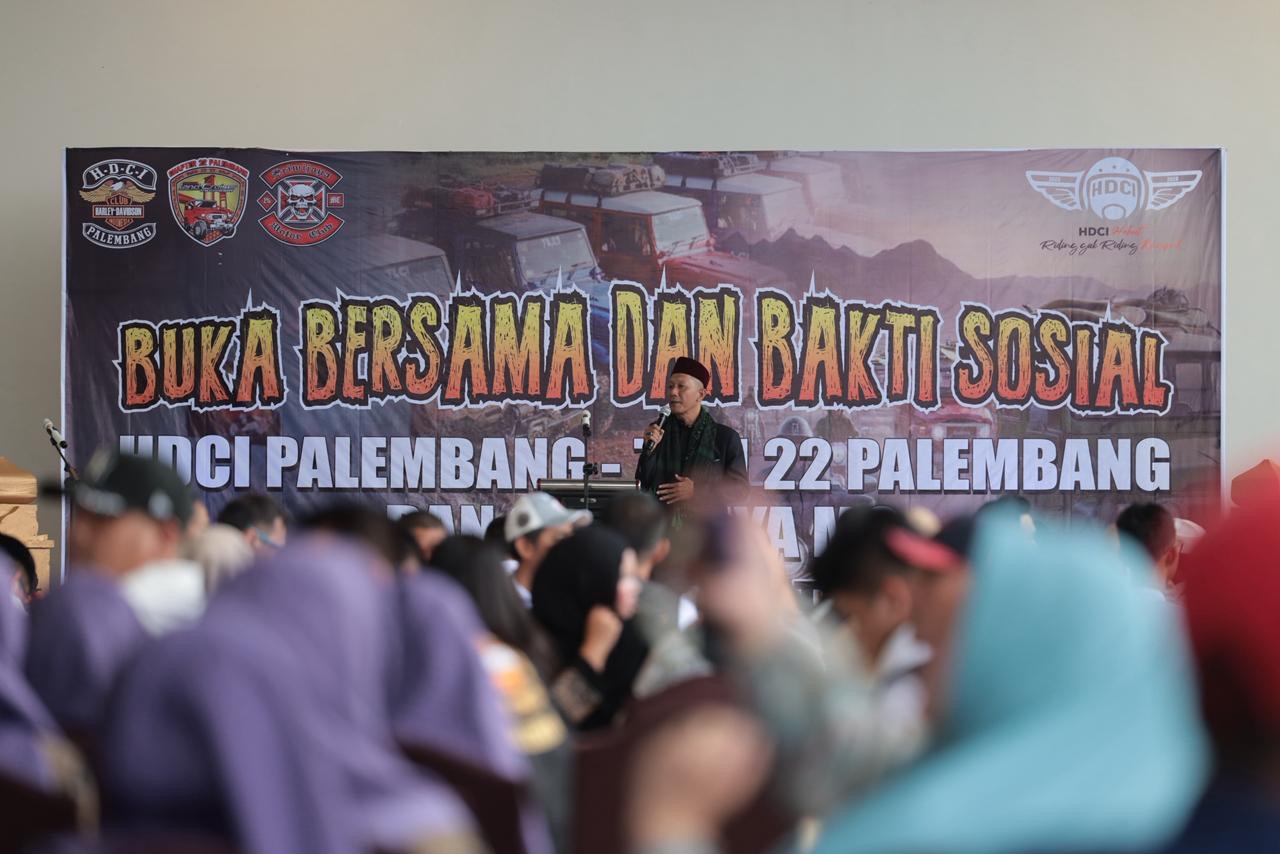 “Hari ini kita berkumpul untuk berbagi. Kegiatan ini tercetus karena kepedulian kita bersama. TLCI, HDCI, dan Sriwijaya Motor Club berkolaborasi dengan satu semangat, mencintai masyarakat Palembang dan menjaga persatuan di Sumatera Selatan. Kami juga mengucapkan terima kasih kepada Bapak Gubernur yang di tengah jadwal padatnya tetap menyempatkan hadir,” ungkapnya.