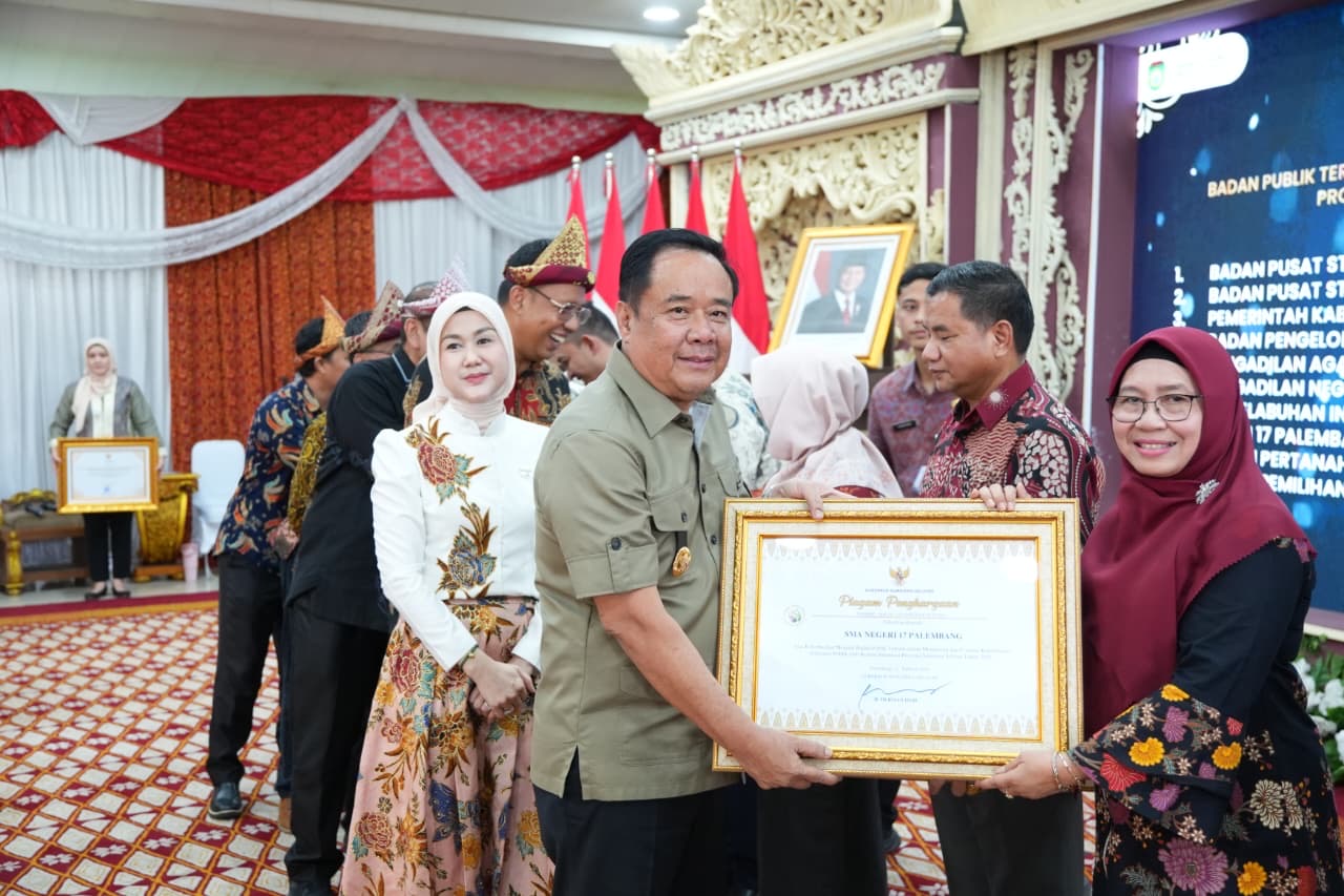 Palembang. Wakil Gubernur Sumsel, H. Cik Ujang, menghadiri sekaligus membuka Anugerah Keterbukaan Informasi Publik (KIP) Provinsi Sumsel Tahun 2025 dan meluncurkan aplikasi E-Monev KIP Tahun 2026 di Griya Agung, Palembang, Jumat (13/2/2026).