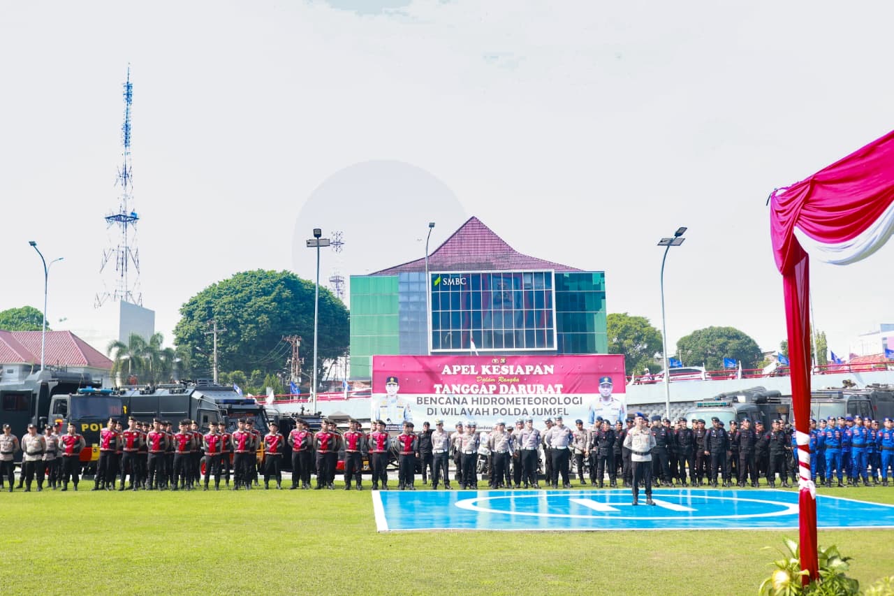 Palembang. Sekretaris Daerah (Sekda) Provinsi Sumatera Selatan (Sumsel), H. Edward Candra, menghadiri Apel Kesiapan dalam rangka Tanggap Darurat Bencana Hidrometeorologi yang diselenggarakan oleh Kepolisian Daerah (Polda) Sumsel di Halaman Mapolda Sumsel, Rabu (5/11/2025).