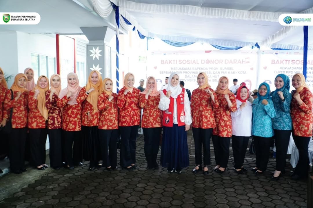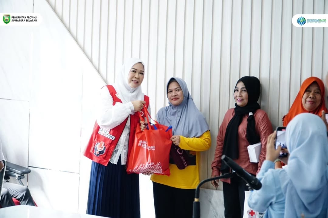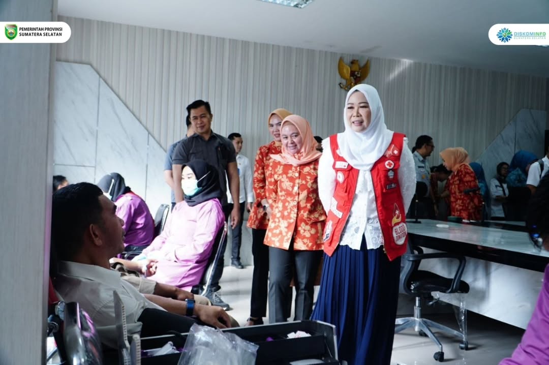 Palembang. Ketua Tim Penggerak Pemberdayaan dan Kesejahteraan Keluarga (TP PKK) Provinsi Sumatera Selatan (Sumsel), Hj Feby Herman Deru, memberikan apresiasi tinggi atas pelaksanaan kegiatan donor darah serentak yang dilaksanakan oleh Badan Pendapatan Daerah (Bapenda) Sumsel bekerja sama dengan Palang Merah Indonesia (PMI) kabupaten/kota.