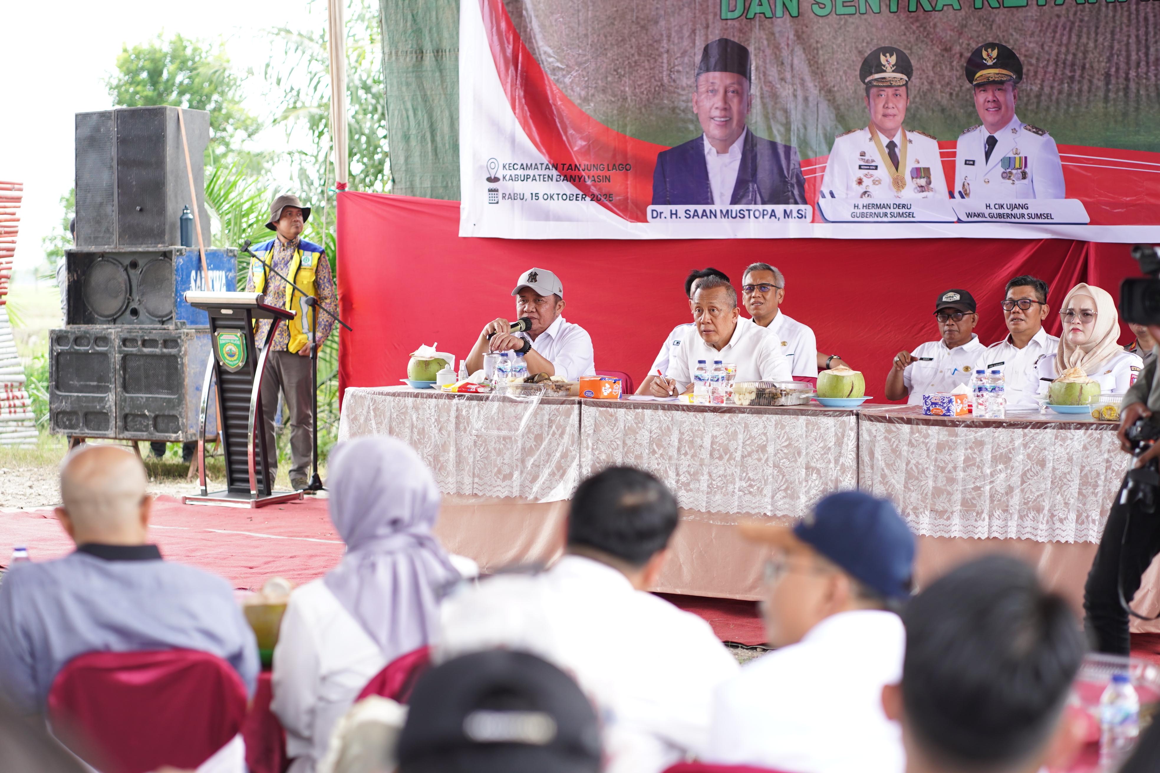 Dalam kesempatan tersebut, Gubernur Herman Deru menyampaikan bahwa Kabupaten Banyuasin merupakan salah satu daerah penyangga utama ketahanan pangan di Sumatera Selatan. Ia menegaskan bahwa sebagian besar masyarakat Sumsel berprofesi sebagai petani kebun dan sawah, dengan potensi komoditas unggulan yang besar.