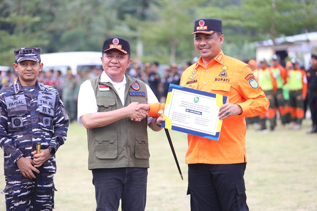 Apel kesiapsiagaan ini diikuti oleh berbagai elemen tanggap bencana, termasuk personel BPBD, SAR, TNI, POLRI, Ormas Rapi, serta elemen mahasiswa dan relawan. Dalam simulasi tersebut, turut dipamerkan kesiapan peralatan seperti perahu karet, mesin, dan sarana pendukung lainnya.