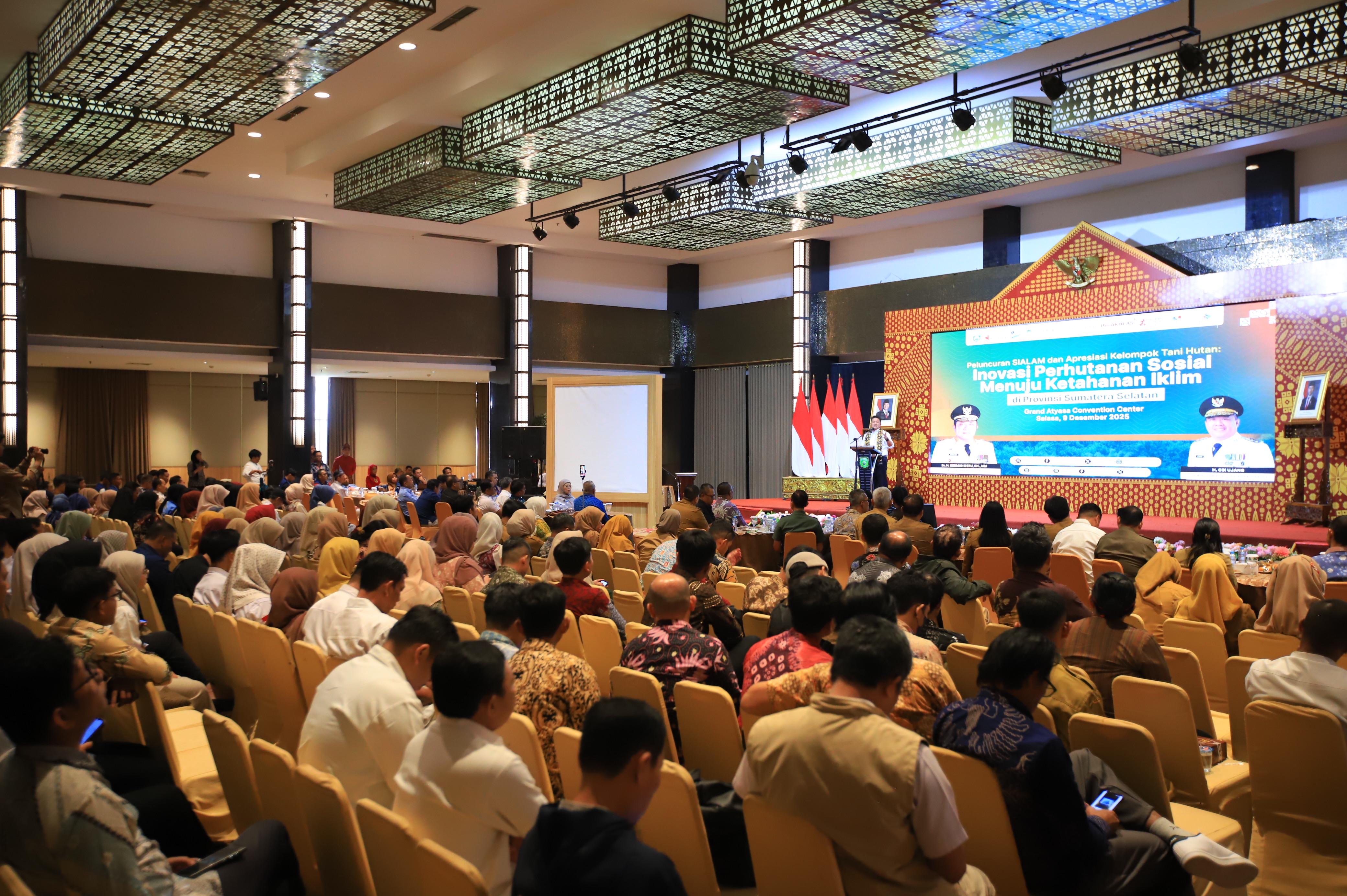 Palembang— Gubernur Sumatera Selatan H. Herman Deru resmi melaunching SI-ALAM (Sistem Informasi Lahan untuk Masyarakat) sekaligus menyerahkan Piagam Penghargaan Kelompok Tani Hutan Terbaik Tingkat Provinsi Sumsel 2025. Acara ini digelar di Grand Atyasa Palembang, Rabu (9/12/2025),
