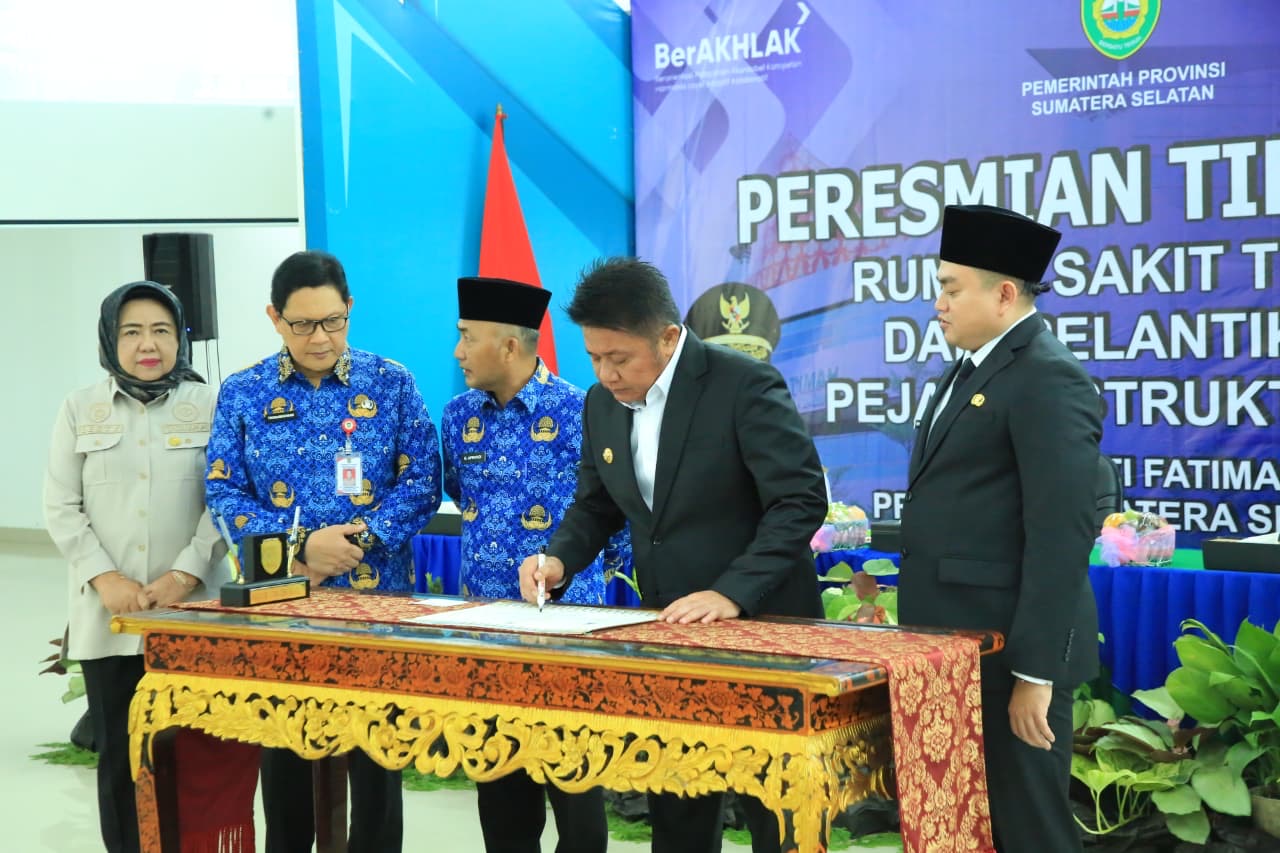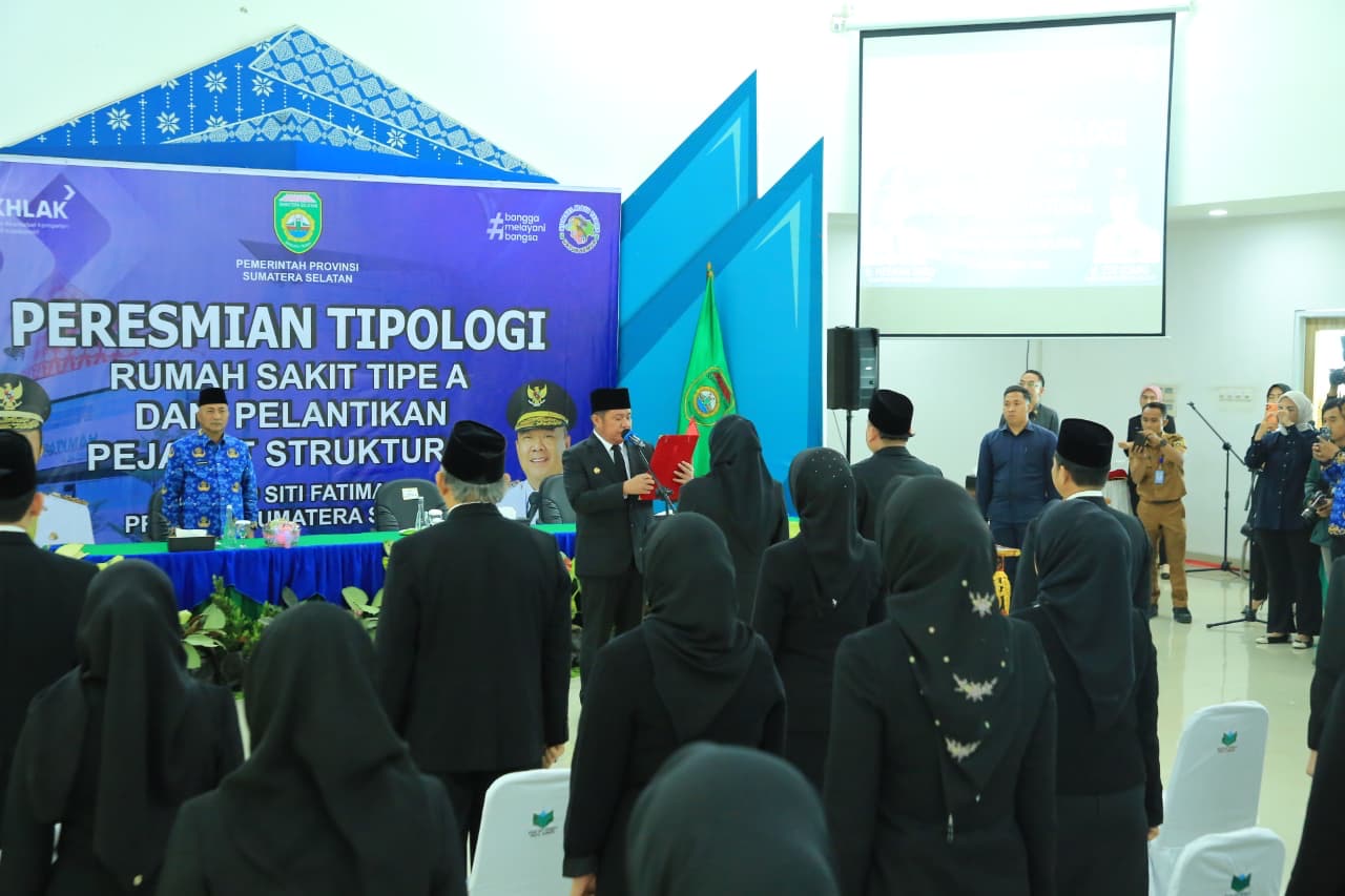 Palembang – Gubernur Sumatera Selatan H. Herman Deru meresmikan peningkatan tipologi RSUD Siti Fatimah menjadi Rumah Sakit Umum Daerah Tipe A dan juga Pelantikan Pejabat Struktural di RSUD Siti Fatimah dalam acara yang digelar di Aula RSUD Siti Fatimah, Senin (17/11/2025). Momen ini menjadi tonggak sejarah baru bagi pelayanan kesehatan di Sumatera Selatan.