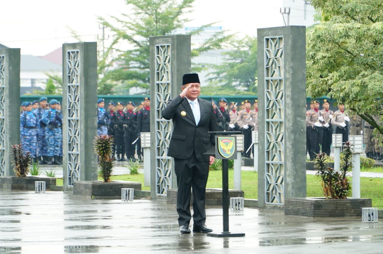 Palembang. Gubernur Sumatera Selatan Herman Deru memimpin Upacara Peringatan Hari Pahlawan bertempat di Taman Makam Pahlawan Ksatria Ksetra Siguntang, Palembang, pada Senin (10/11/2025). Ditengah rintik hujan yang turun, upacara berlangsung dengan khidmat dan tenang.