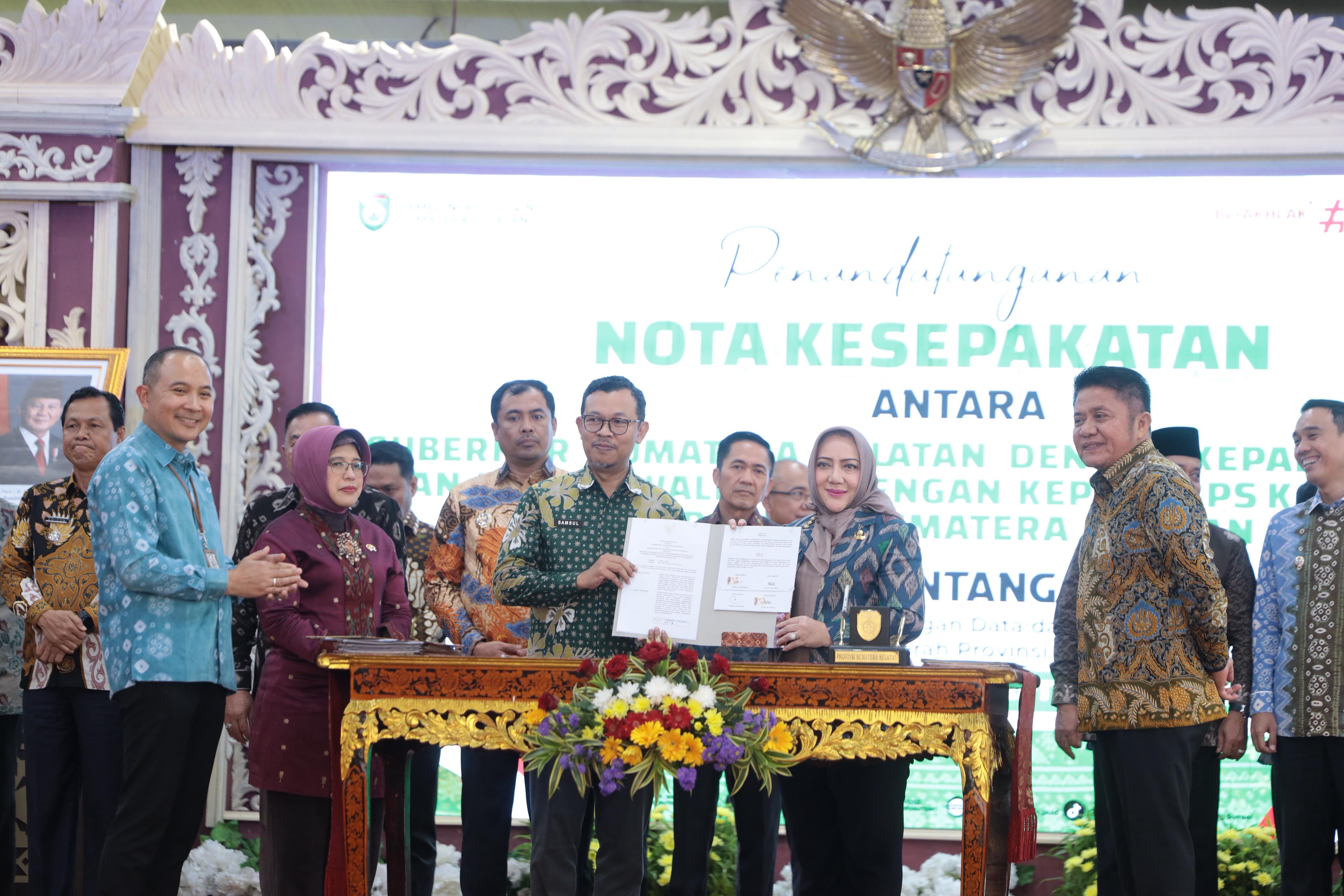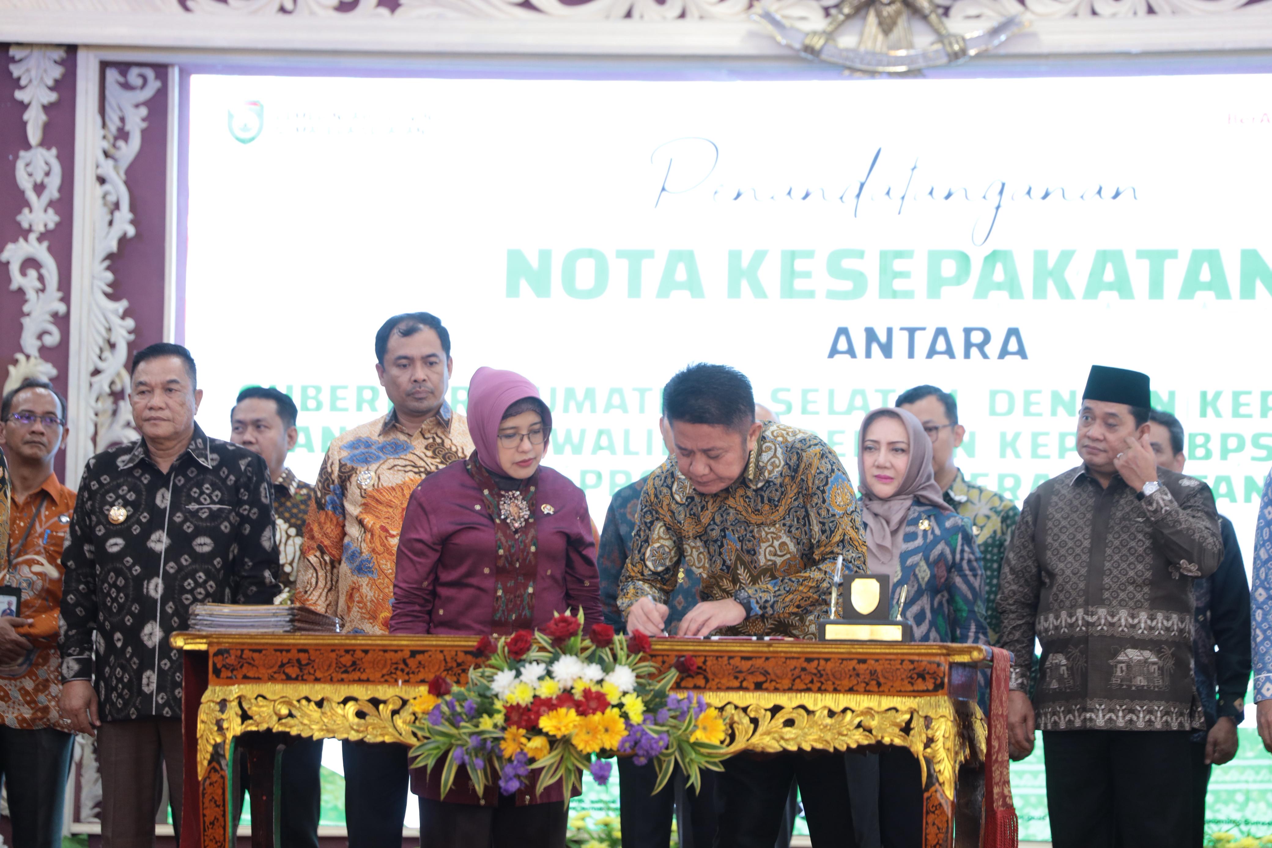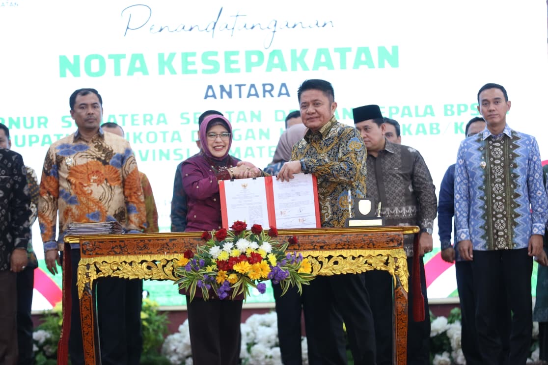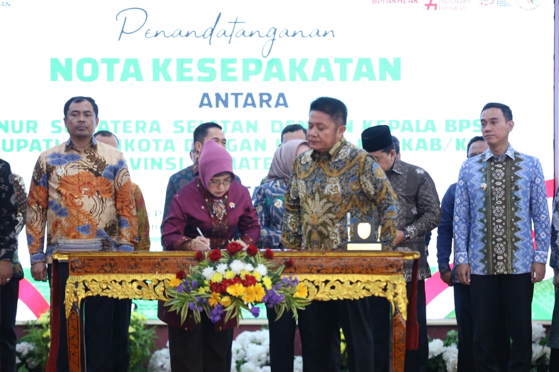 Penandatanganan Kesepakatan tersebut dilaksanakan antara Gubernur Sumatera Selatan H. Herman Deru dengan Kepala BPS RI Amalia Adininggar Widyasanti dan juga antara Bupati/Walikota dengan Kepala BPS Kabupaten/Kota se Provinsi Sumatera Selatan. Acara berlangsung di Griya Agung Palembang, Jumat (12/9/2025), Kesepakatan ini berfokus pada penyediaan, pemanfaatan, dan pengembangan data atau informasi statistik.