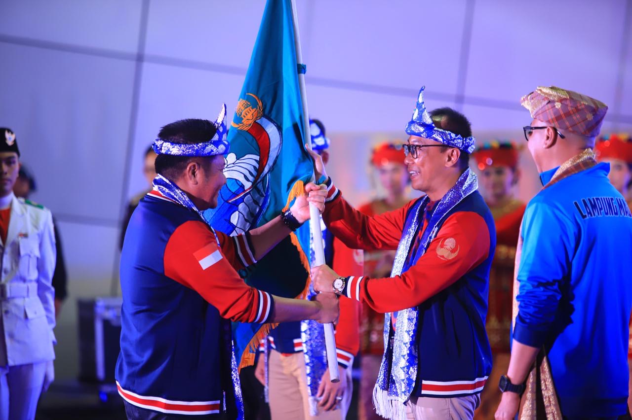 Di akhir seremoni, disaksikan oleh Menteri Aparatur Negara dan Reformasi Birokrasi (PANRB) Rini Widyantini, Pataka tuan rumah diserahkan sebagai estafet kepada Provinsi Lampung.