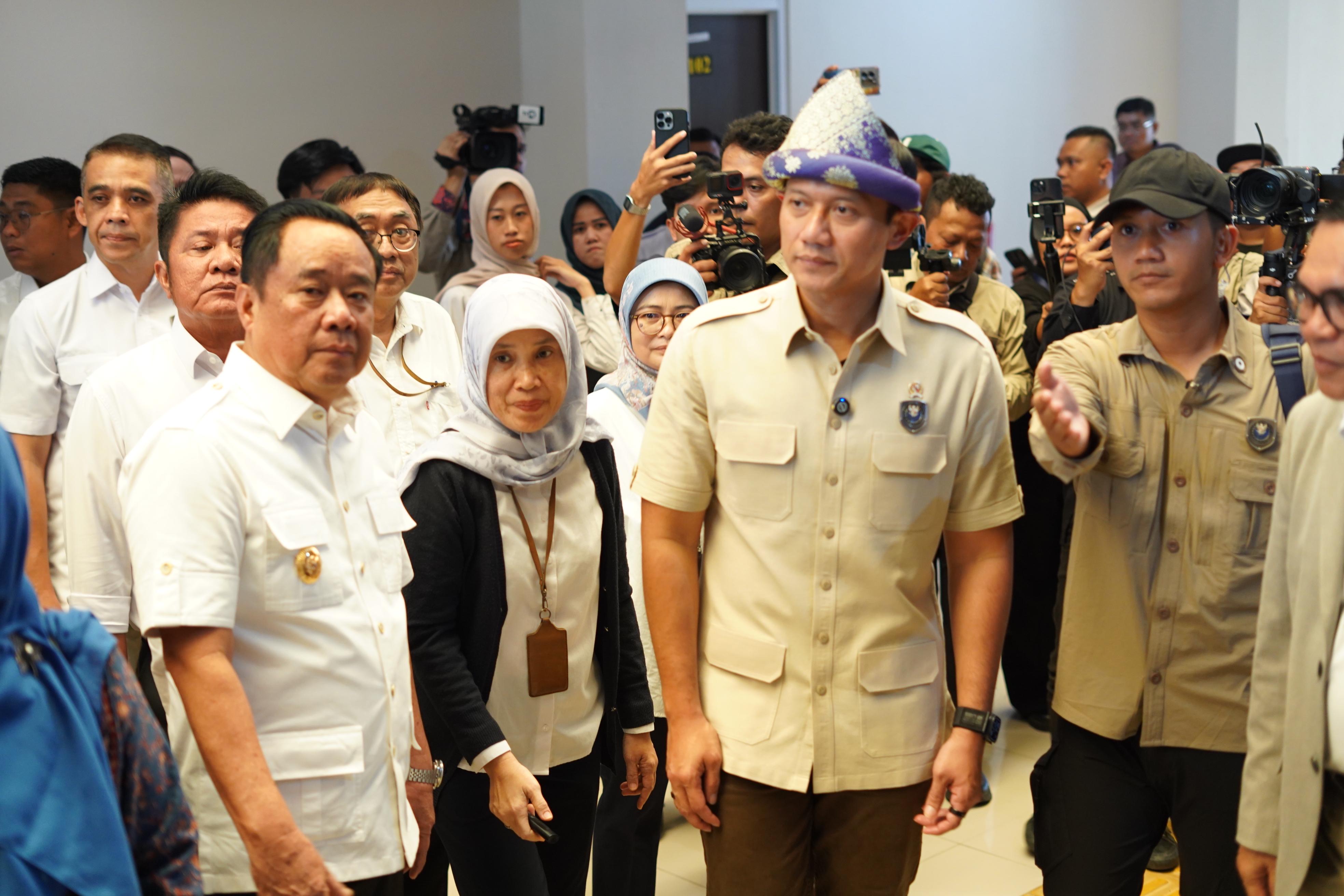 Palembang. Sumsel mendampingi Menteri Koordinator Infrastruktur dan Pembangunan Kewilayahan Agus Harimurti Yudhoyono (AHY) meninjau Rumah Susun (Rusun) Mahasiswa yang berlokasi di lingkungan Universitas Sriwijaya (Unsri) Palembang, Selasa.