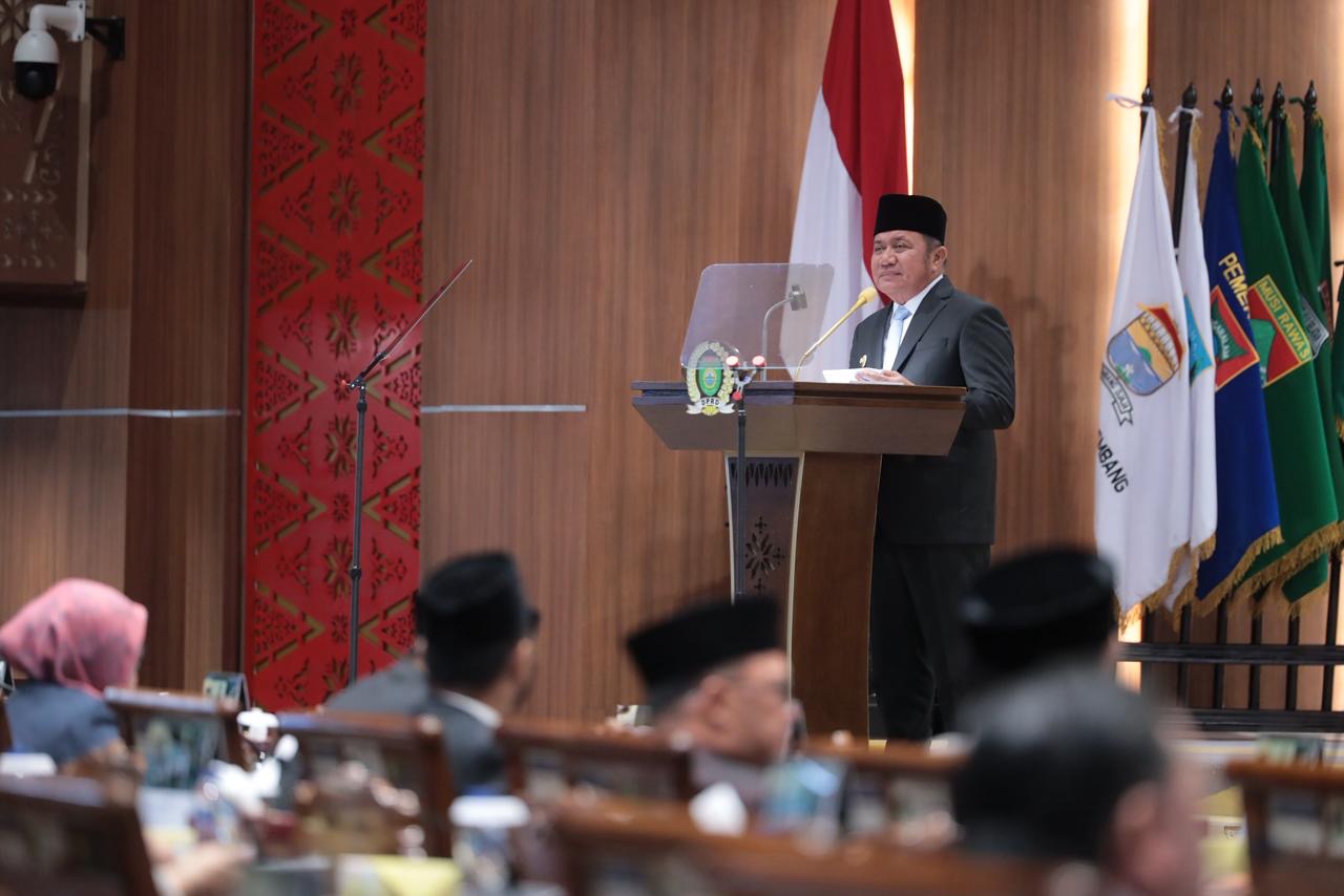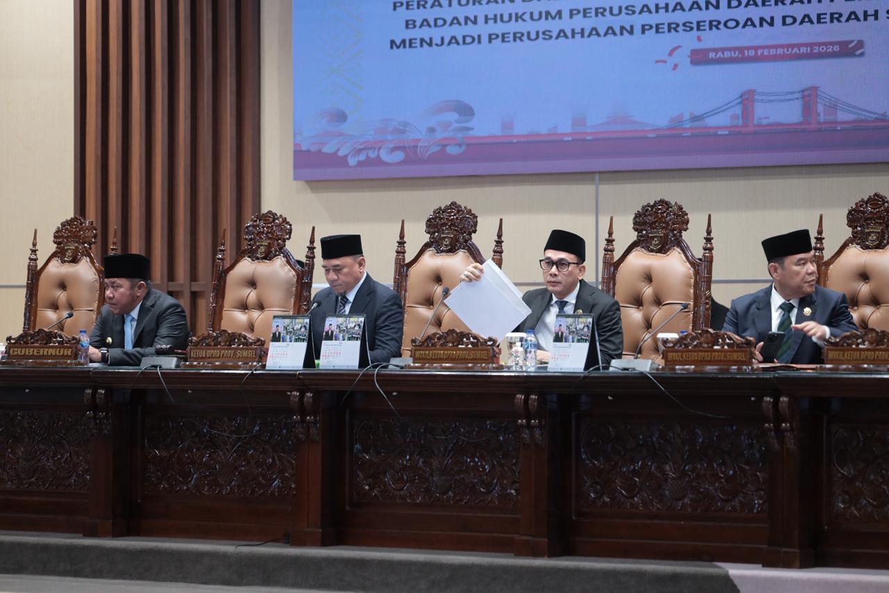 Herman Deru menghadiri Rapat Paripurna XXXI DPRD Provinsi Sumatera Selatan yang digelar di Gedung DPRD Sumsel, Rabu (18/2/2026). Dalam rapat tersebut, Gubernur menyampaikan penjelasan terhadap perubahan Peraturan Daerah Nomor 12 Tahun 2017 tentang perubahan bentuk badan hukum perusahaan daerah pertambangan dan energi menjadi perusahaan perseroan daerah Sumsel Energi Gemilang.