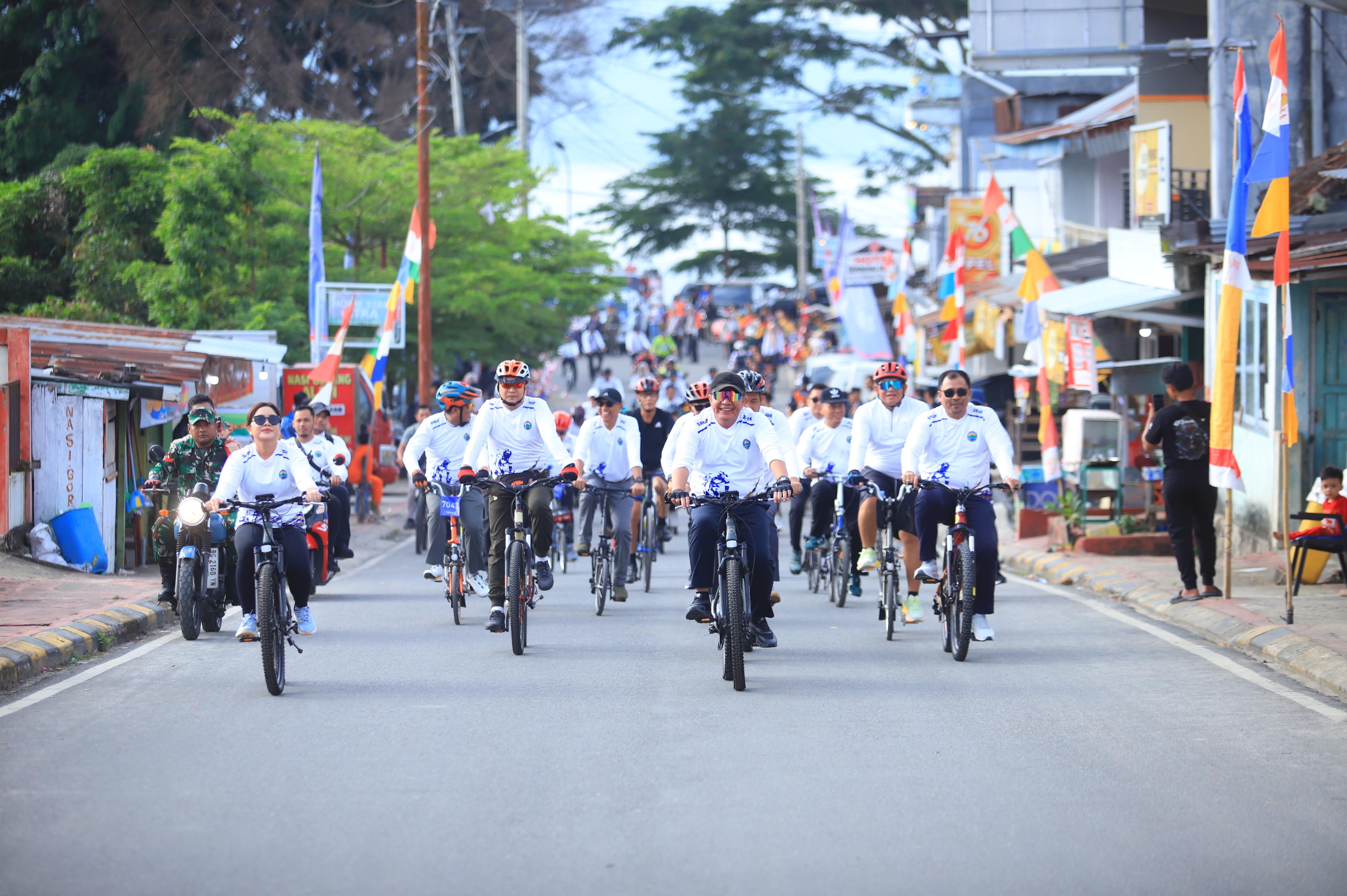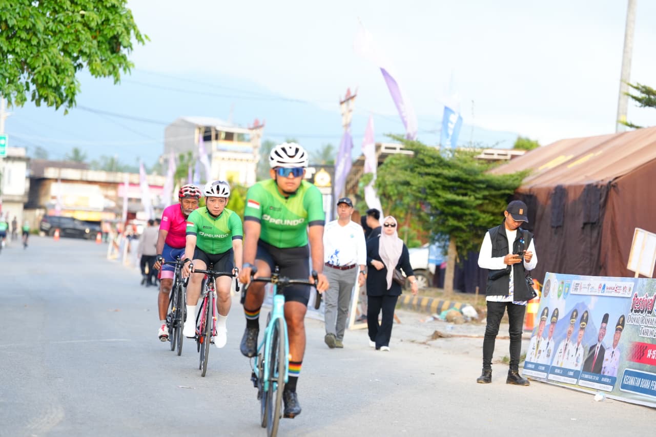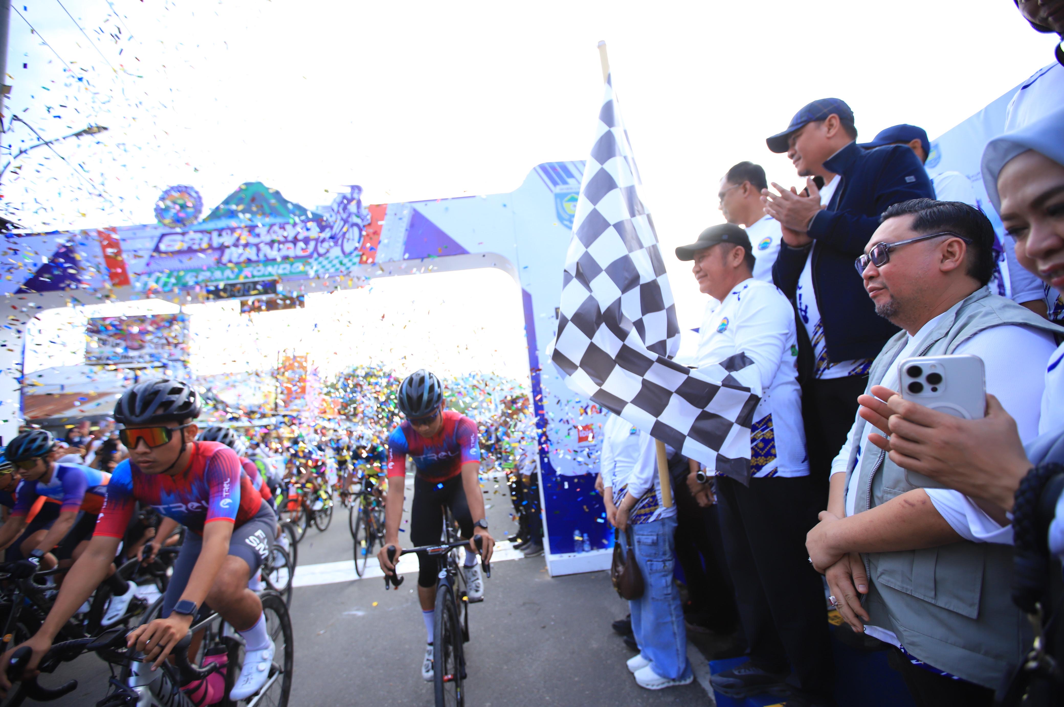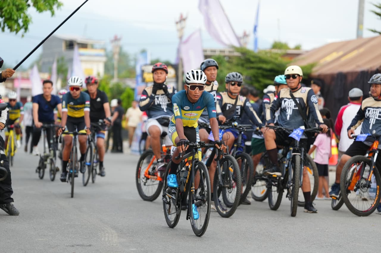 BANDING AGUNG - Gubernur Sumatera Selatan H. Herman Deru didampingi Bupati Ogan Komering Ulu Selatan Abusama, S.H., melepas 1.863 peserta Sriwijaya Ranau Gran Fondo (SRGF) Tahun 2025, Sabtu (15/11/2025). Bertempat di Plaza Icon Danau Ranau Kecamatan Banding Agung Kabupaten OKU Selatan.