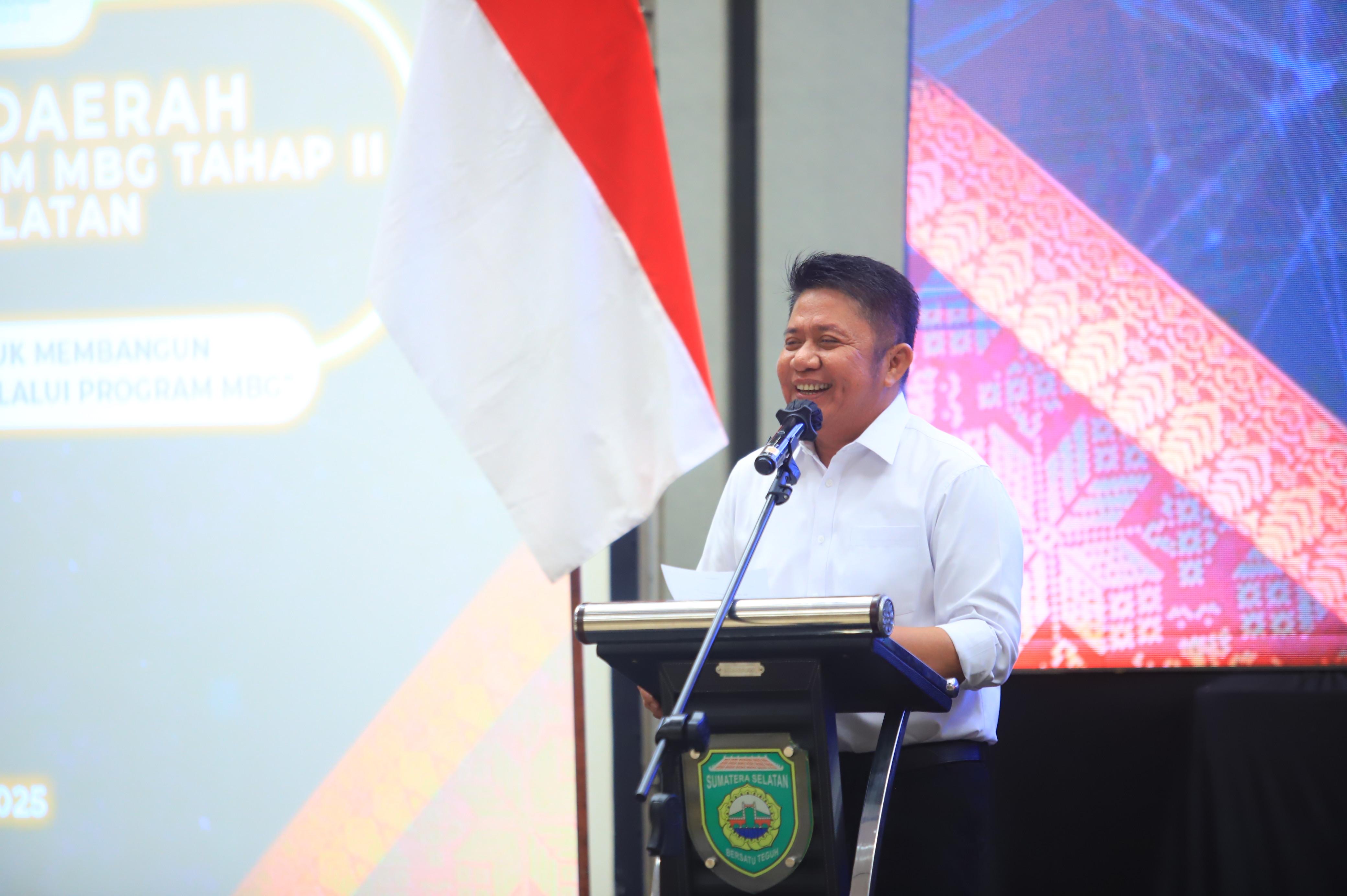 Palembang, Gubernur Sumatera Selatan, H. Herman Deru, menghadiri Rapat Koordinasi Daerah (Rakorda) Evaluasi Survei Monev Program MBG Tahap II Provinsi Sumsel Tahun 2025. Mengusung tema "Memperkuat Sinergi dan Kolaborasi untuk Membangun Generasi yang Sehat, Cerdas dan Produktif melalui Program MBG," acara ini digelar di Hotel Santika Premier Bandara Palembang, Senin (8/12/2025).