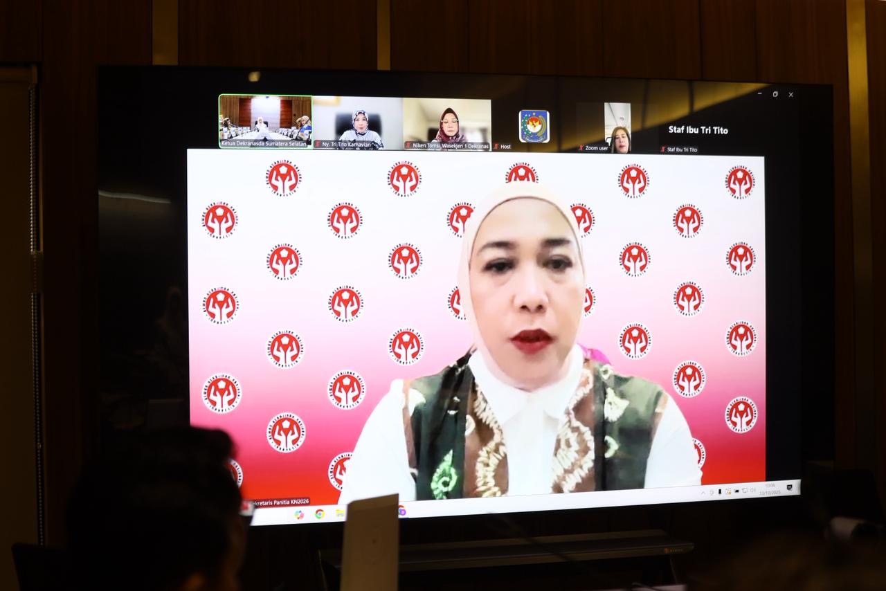Palembang. Dalam langkah proaktif memastikan kesuksesan partisipasi Provinsi Sumatera Selatan pada pameran kerajinan nasional bergengsi, Kriyanusa 2026, Ketua Dewan Kerajinan Nasional Daerah (Dekranasda) Provinsi Sumsel, Hj. Feby Deru, mengikuti Rapat Penjelasan Persiapan Pelaksanaan Kriyanusa 2026 secara virtual di Palembang, Senin (13/10/2025).