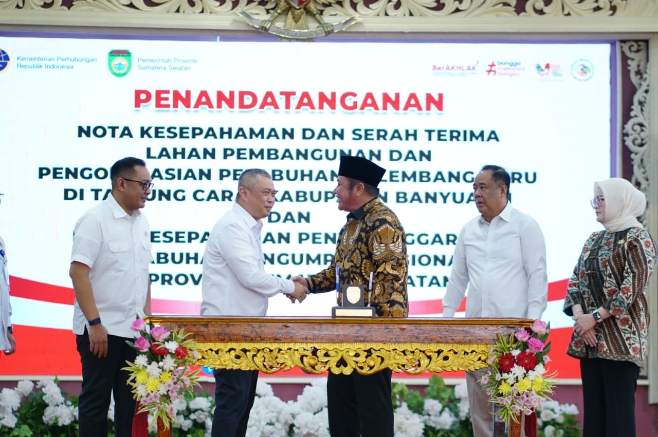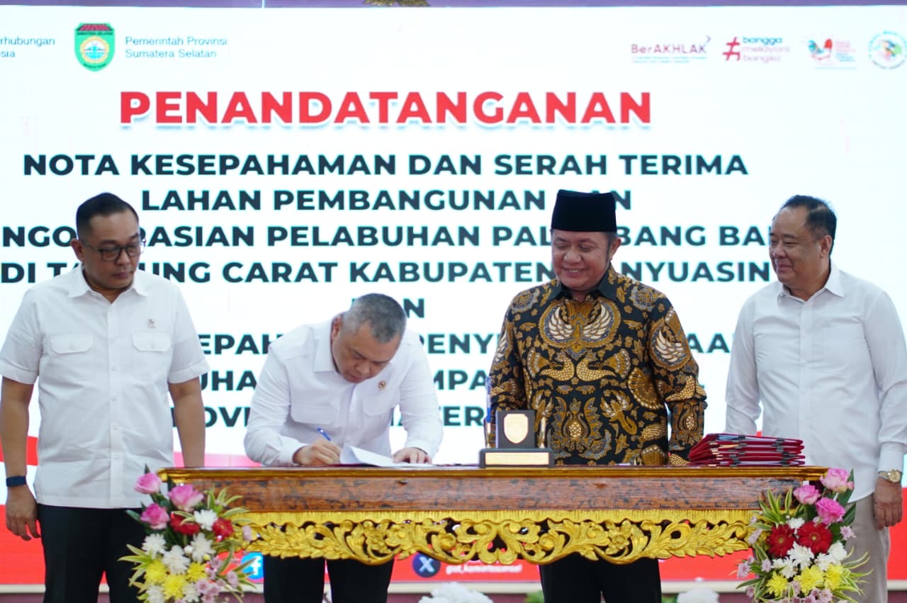 Pada hari Jumat (31/10/2025) di Palembang, dilakukan penandatanganan Nota Kesepahaman (MoU) dan Serah Terima Lahan untuk pembangunan dan pengoperasian pelabuhan baru di Tanjung Carat, Kabupaten Banyuasin, serta Nota Kesepahaman Penyelenggaraan Pelabuhan Pengumpan Regional di Provinsi Sumsel.