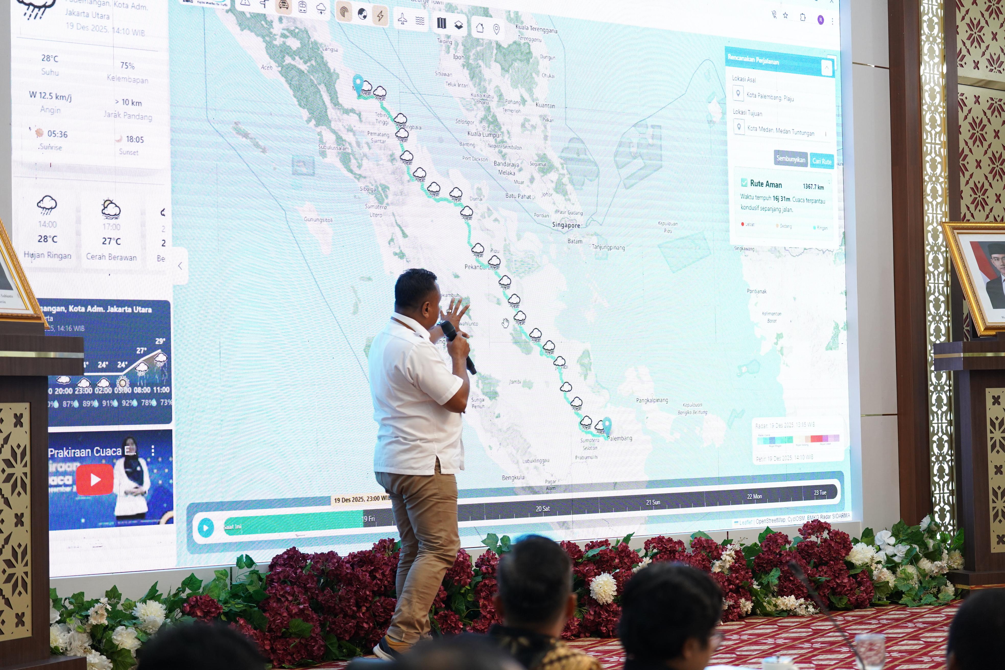 Dalam kesempatan yang sama, Kepala BMKG SMB II Palembang, Siswanto, S.T., M.Si., menyampaikan bahwa berdasarkan kajian data, wilayah Sumatera Selatan didominasi potensi bencana banjir dan angin kencang. Ia juga mengungkapkan adanya peluang sedang hingga tinggi terbentuknya siklon tropis di wilayah Sumbagsel. “Potensi curah hujan sedang hingga lebat diperkirakan terjadi pada periode 25 Desember 2025 hingga 1 Januari 2026, sehingga perlu kewaspadaan bersama,” ujarnya.