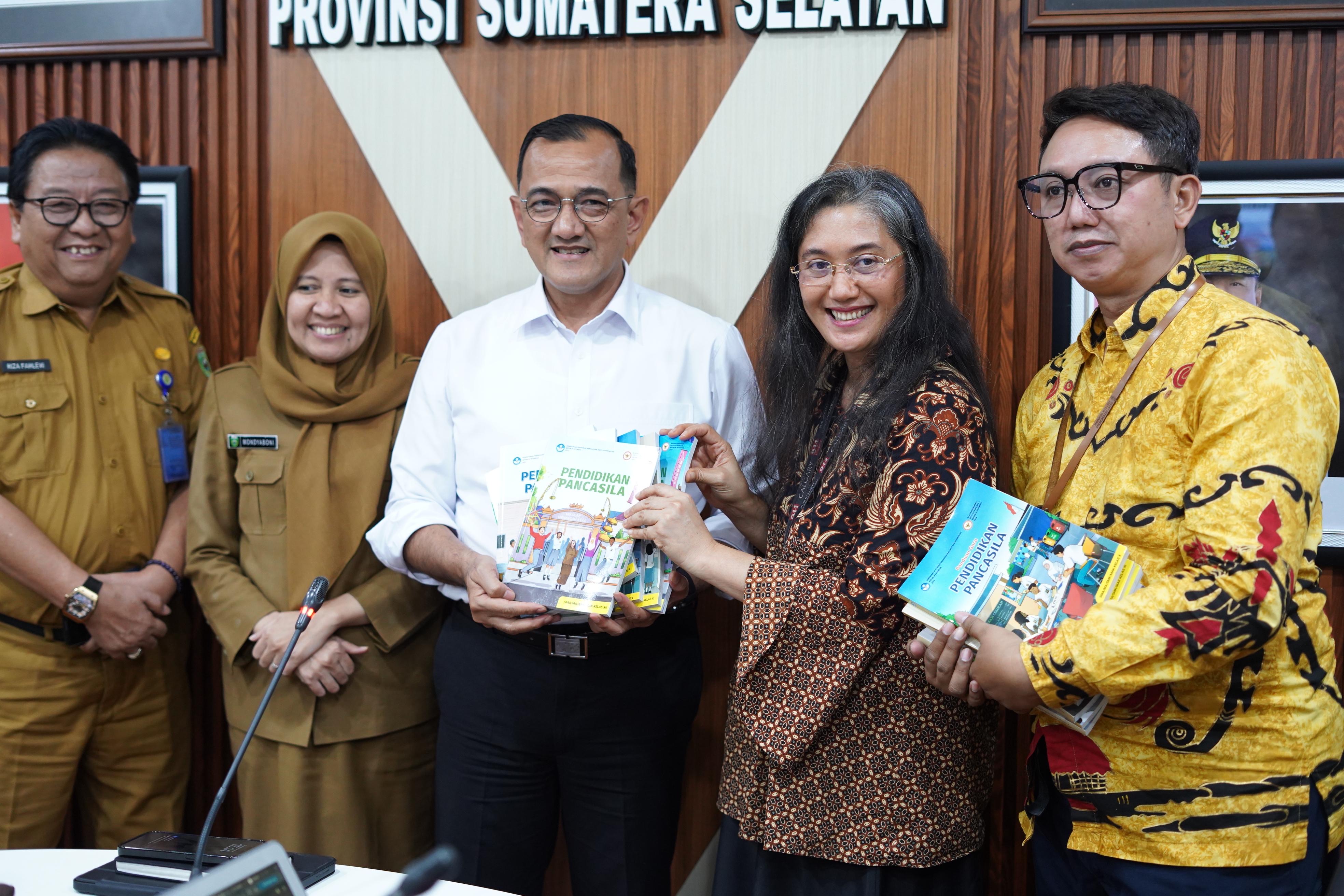 Dalam kesempatan yang sama, Kepala Dinas Pendidikan Provinsi Sumsel, Hj. Mondyaboni, S.E., S.Kom., M.Si., M.Pd menyampaikan dukungannya terhadap distribusi buku dan sosialisasi nilai-nilai Pancasila di satuan pendidikan.