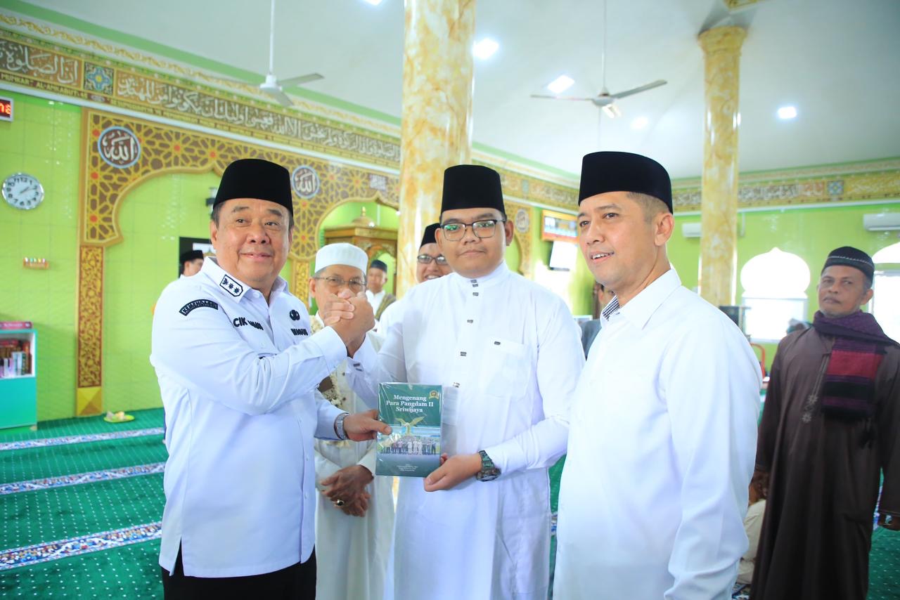 Dalam kesempatan itu, Cik Ujang menyerahkan bantuan berupa uang pembangunan sebagai bentuk dukungan Pemerintah Provinsi Sumatera Selatan terhadap percepatan penyelesaian renovasi masjid.
