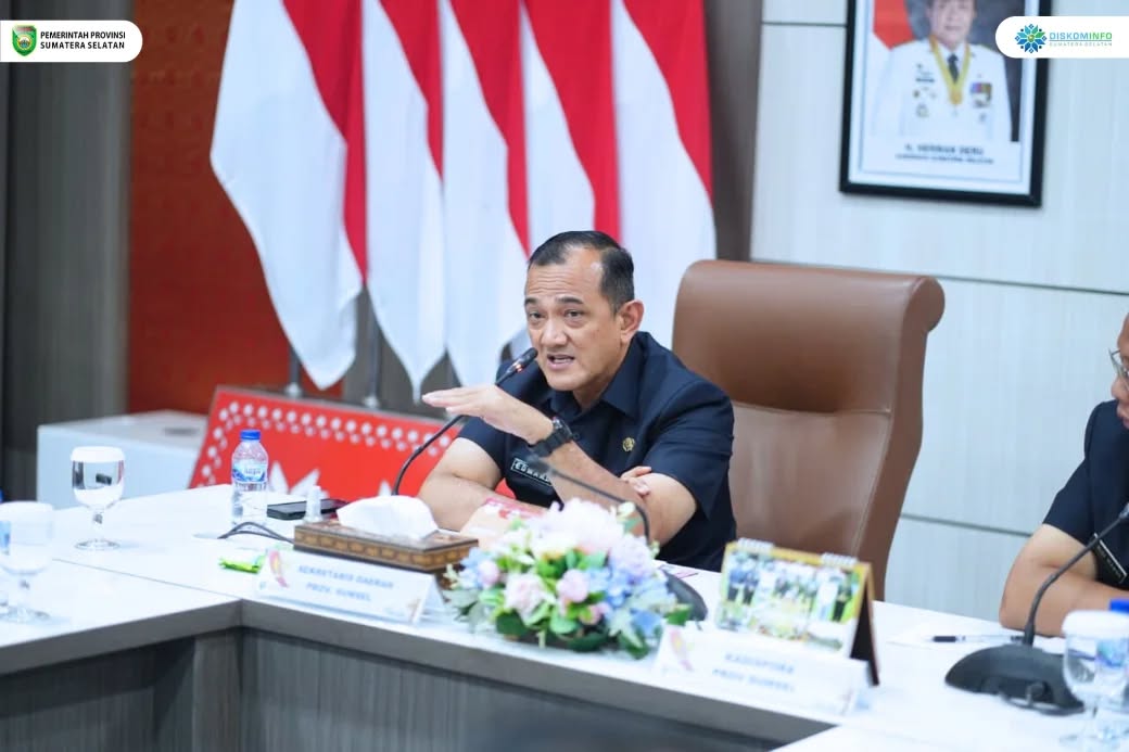 PALEMBANG – Sekretaris Daerah Provinsi Sumatera Selatan (Sumsel) H. Edward Candra memimpin Rapat Koordinasi persiapan Sriwijaya Dempo Run 2025 dan Sumsel Bugar, yang berlangsung di Ruang Rapat Bina Praja, Kamis (20/11/2025). Rakor ini digelar sebagai langkah memastikan seluruh aspek teknis, koordinasi lintas pihak, serta kesiapan venue di Kota Pagar Alam.