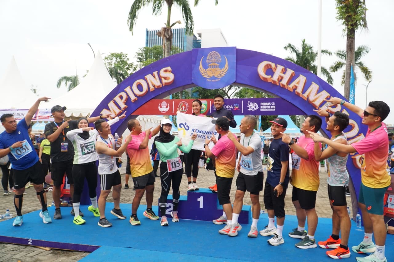 Tak hanya berlari, peserta juga mengikuti senam bersama dan pembagian hadiah yang menambah semarak suasana pagi. Gelak tawa dan keceriaan tampak dari wajah para peserta, mencerminkan semangat sportivitas dan kebersamaan khas Korpri.