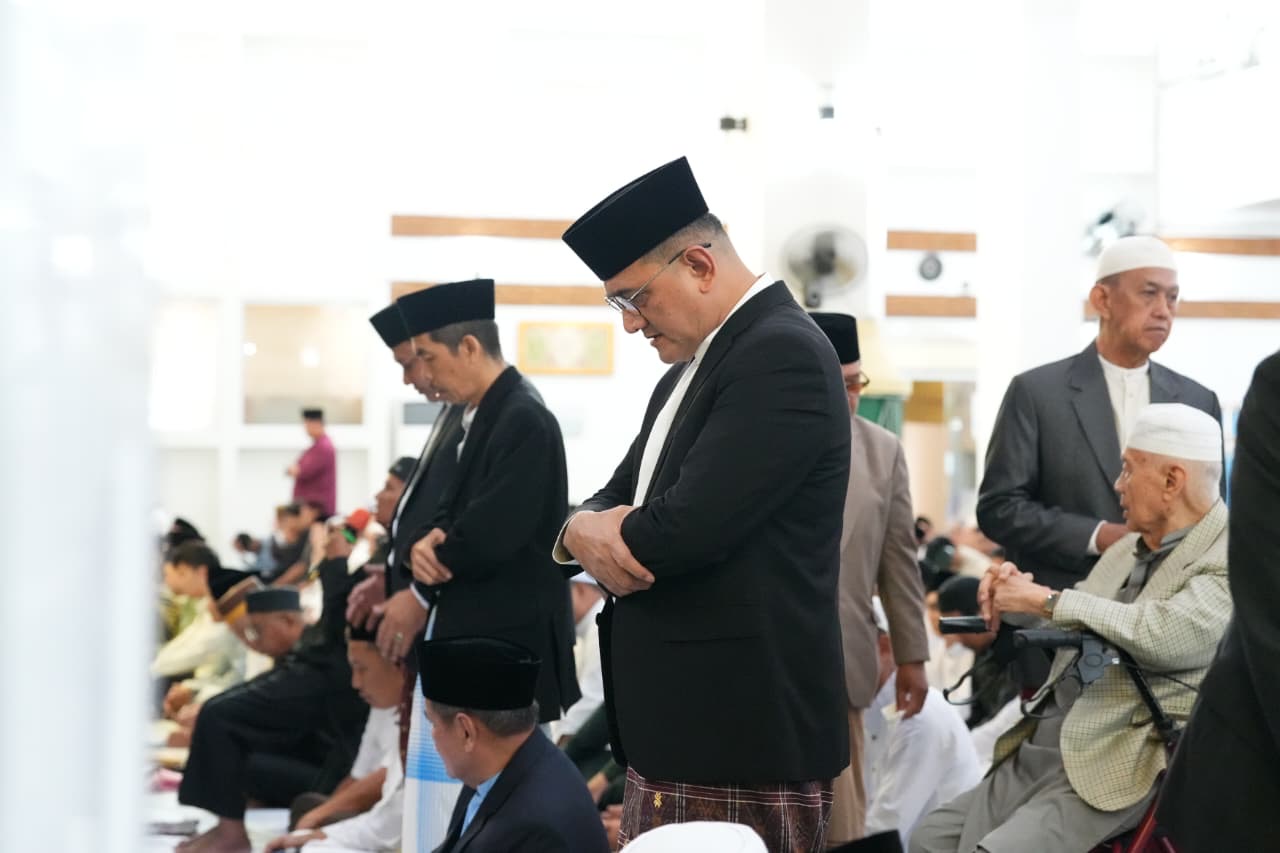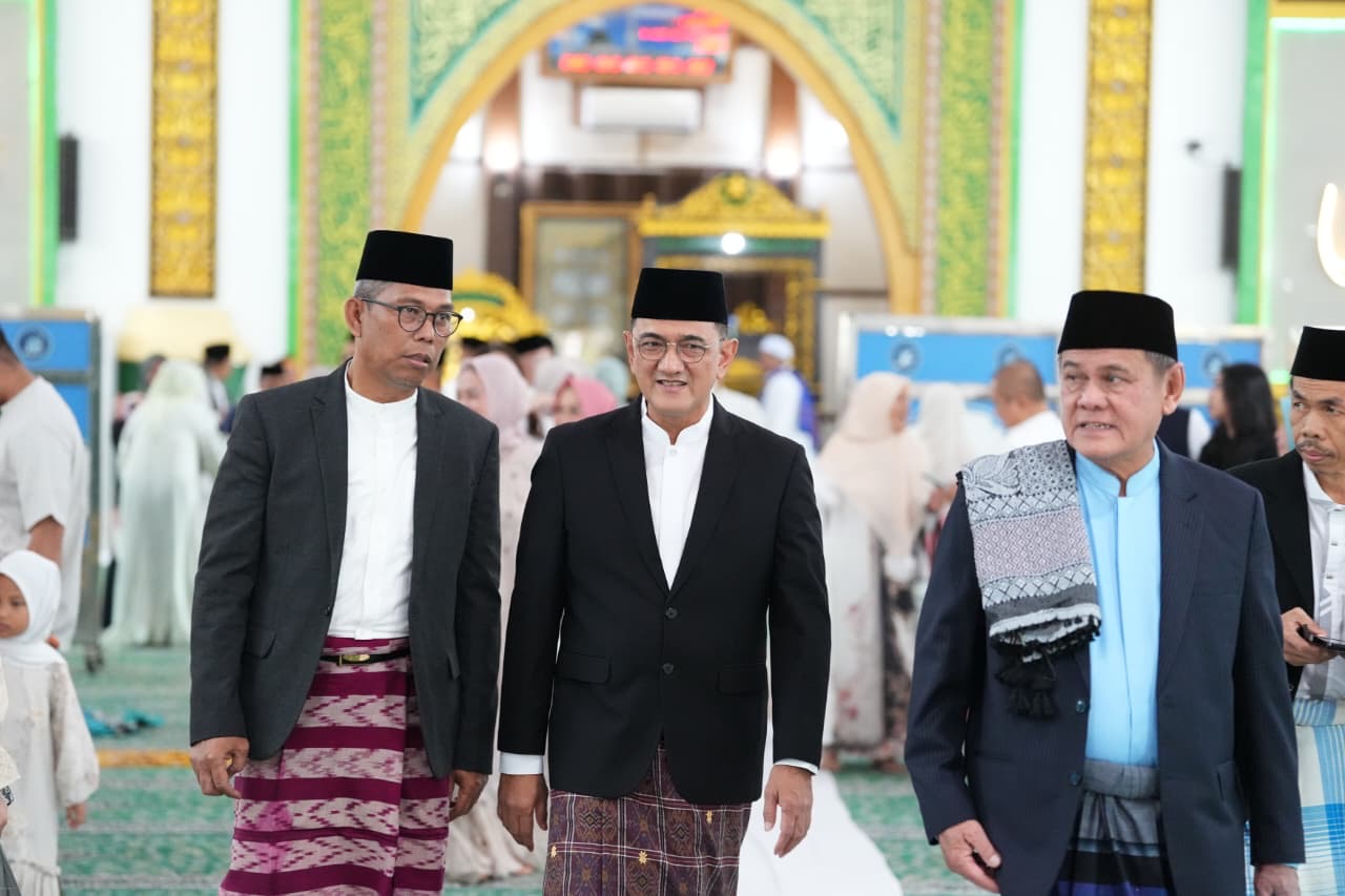 Palembang. Sekretaris Daerah (Sekda) Provinsi Sumatera Selatan, Drs. H. Edward Candra, MH melaksanakan Sholat Idul Fitri 1 Syawal 1447 H / 2026 M bersama para pejabat pendamping di Masjid Raya Taqwa Palembang (Sabtu, 21/3/2026).
