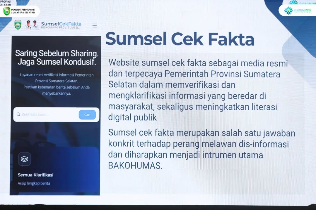 Platform ini ditetapkan sebagai media resmi Pemerintah Provinsi Sumsel dalam memverifikasi dan mengklarifikasi informasi yang beredar di masyarakat.