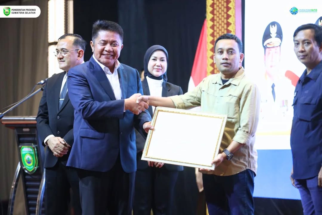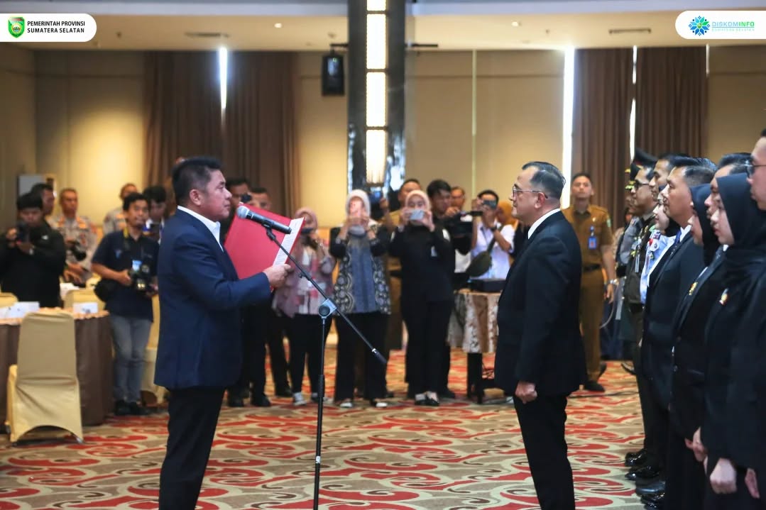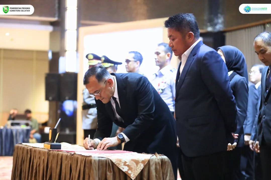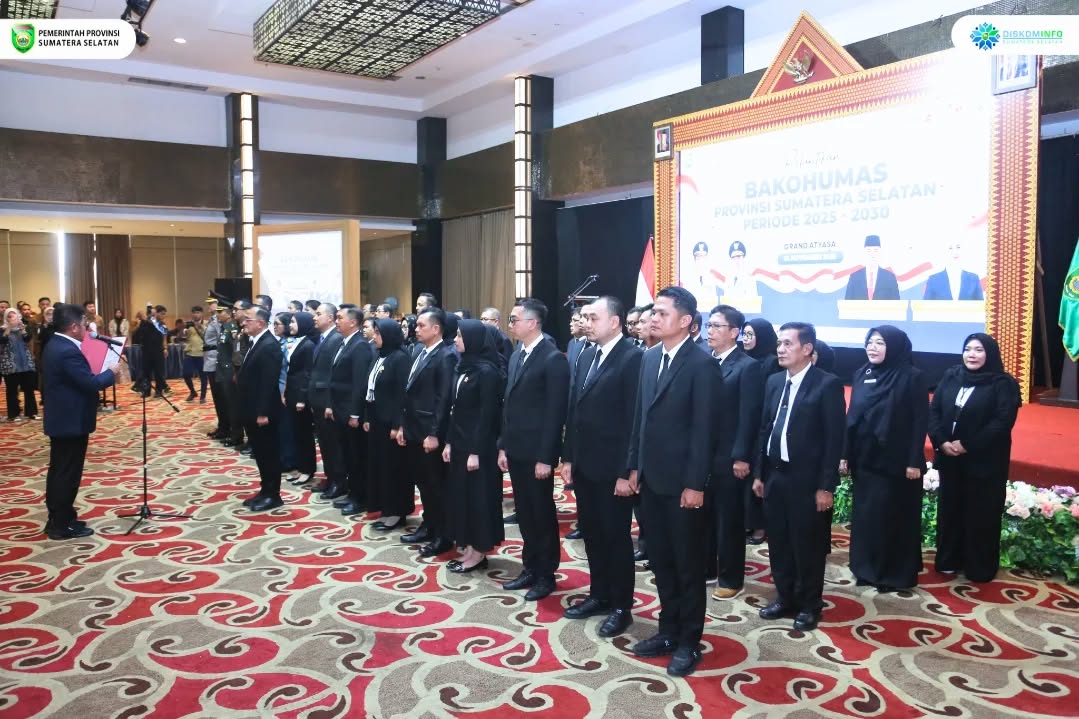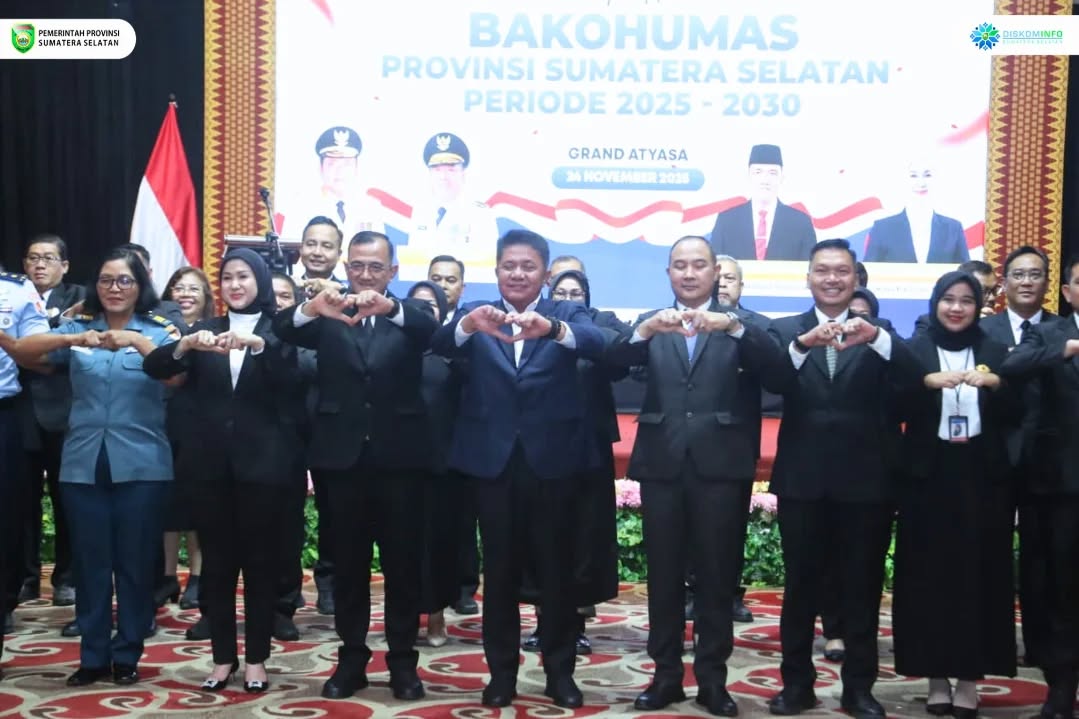 Palembang. Gubernur Sumatera Selatan, H. Herman Deru, secara resmi melantik anggota Badan Koordinasi Hubungan Masyarakat (BAKOHUMAS) Provinsi Sumsel masa bakti 2025-2030 dan meresmikan platform digital sumselcekfakta.sumselprov.go.id.