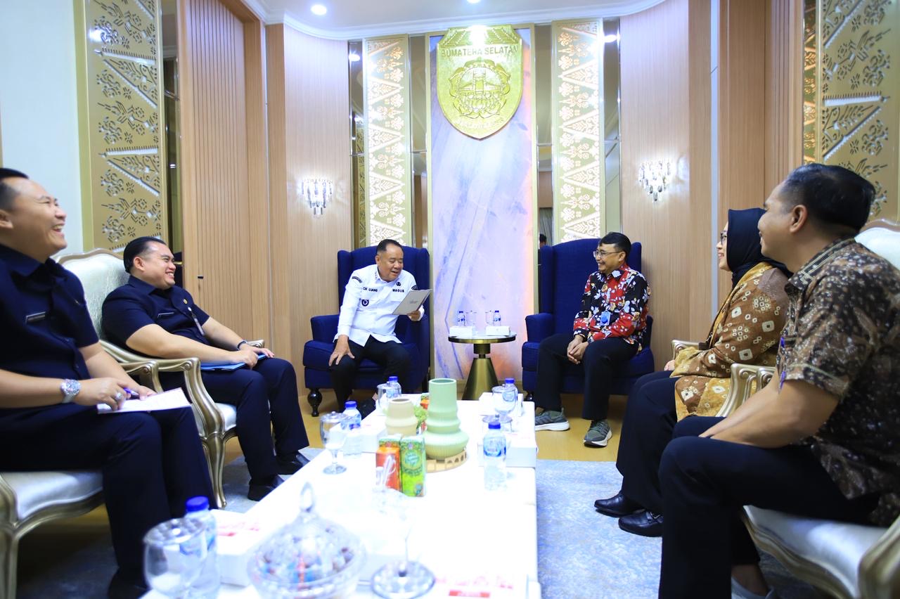 Wakil Gubernur Sumatera Selatan menerima kunjungan silaturahmi Direktur Utama PT Pupuk Sriwidjaja (Pusri) Palembang beserta jajaran di Ruang Tamu Wakil Gubernur, Kantor Gubernur Sumsel, Kamis (16/10/2025).