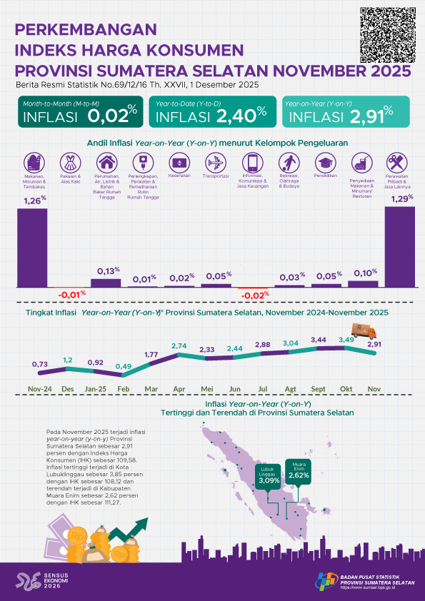 Perkembangan Indeks Harga Konsumen Provinsi Sumatera Selatan November 2025