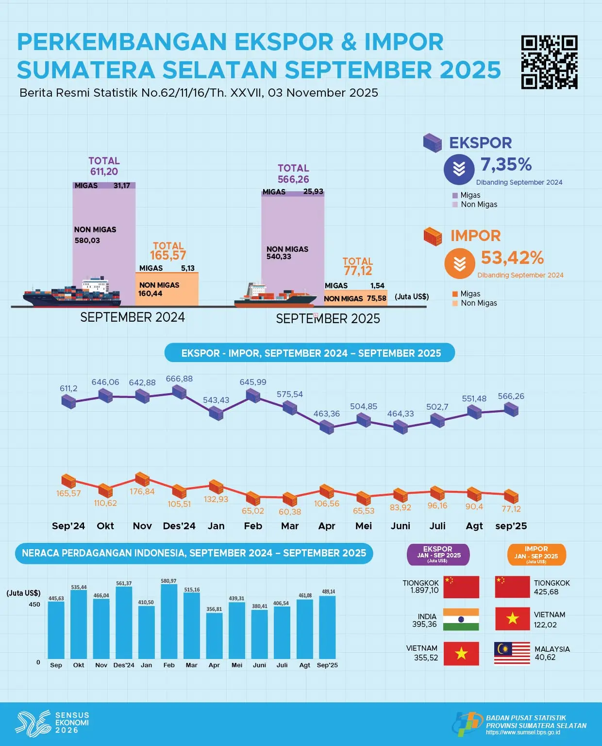 Perkembangan Ekspor dan Impor Sumatera Selatan, Oktober 2025